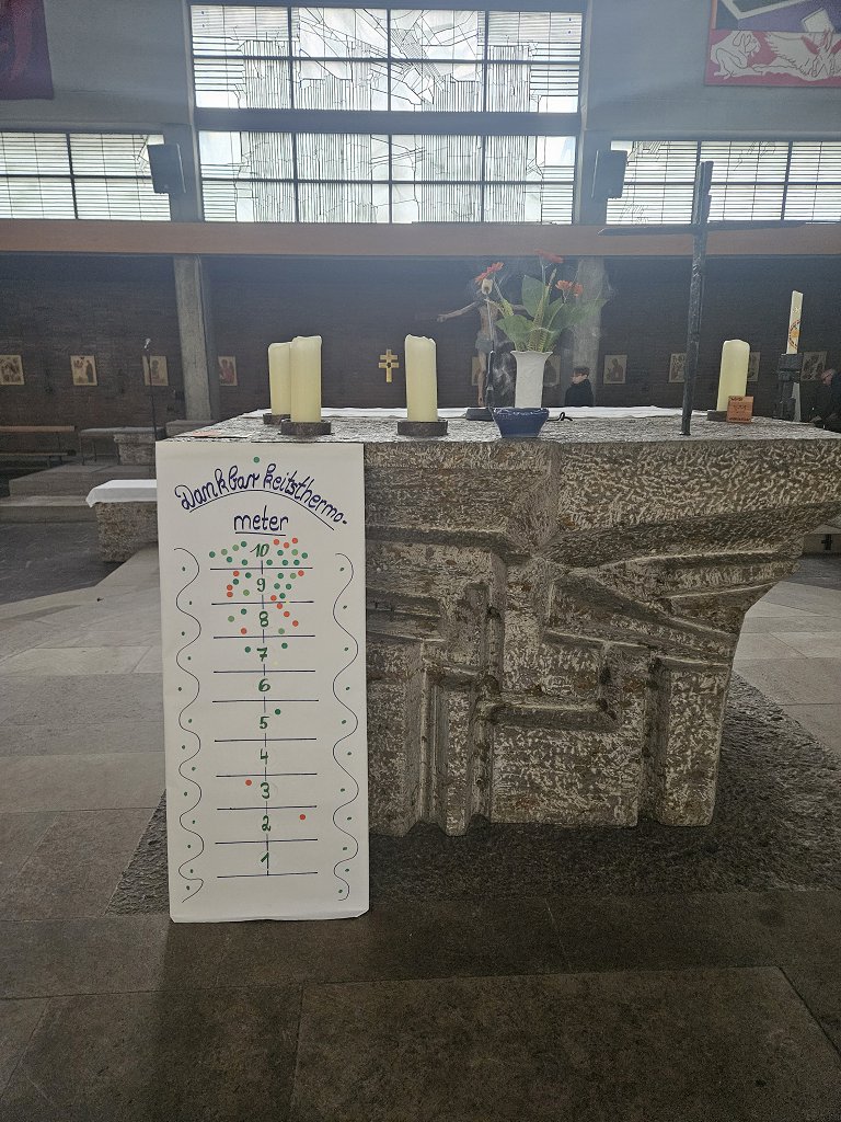 Wir hatten letzten Sonntag im MehrWegGottesdienst das Thema „Gott sei Dank“ und haben da ein Dankbarkeits-Thermometer aufgestellt. Da durften sich alle mit einem Klebepunkt verewigen, wie dankbar sie gerade sind. Und ich war ziemlich erstaunt, wie weit oben sich die Leute eingeordnet haben!