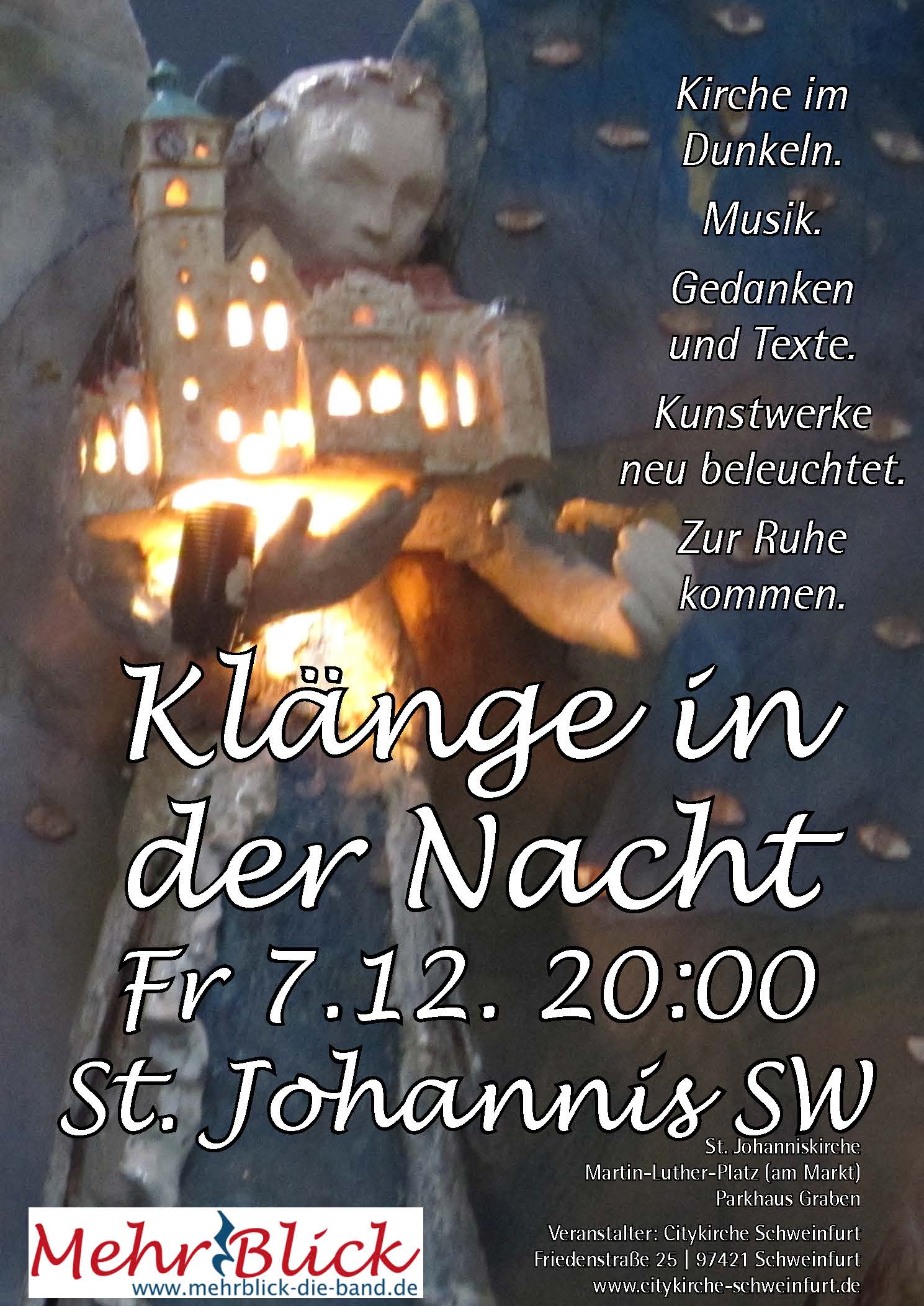 Mitten in der Nacht erwachen in der dunklen Johanniskirche einzelne Figuren zum Leben. Ausschnitte aus Kunstwerken der Johanniskirche werden beleuchtet. Ungewohnte Perspektiven auf die Kunst und auf das eigene Leben entstehen. Literarische Texte verweben sich mit leiser Musik der Band MehrBlick in kleiner Besetzung (Sandy und Klaus Fiedler, Heiko Kuschel)